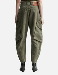 - JW Anderson - Twisted Cargo Trousers - Tapered-leg cargo trousers - Garment dyed - Curved seams - Two large front patch pockets - Two side pockets - Two back welt pockets - Pecan logo embossed leather patch - Made in Bulgaria - Color: Khaki - Material: 100% Cotton - See more Jeans and Clothing SIZING - Model wears size 26 - Model measures: Height 177cm, Chest 32”/81cm, Waist 23.5”/59.7cm, Hip 33’’/83.8cm