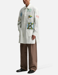 - Kenzo - Drawn Varsity Long Sleeve Shirt - Cotton poplin shirt - Button closure - All-over graphic print - Extra long hem - Side hem slits - Color: White - Material: 100% Cotton - See more Shirts and Clothing SIZING Male - Model wears size M - Model measures: Height 187cm, Chest 37”/96.5cm, Waist 30”/76.2cm, Hip 37”/94cm - Model wears size S - Model measures: Height 179cm, Chest 32”/81cm, Waist 23’’/58.42cm, Hip 35’’/88.9cm
