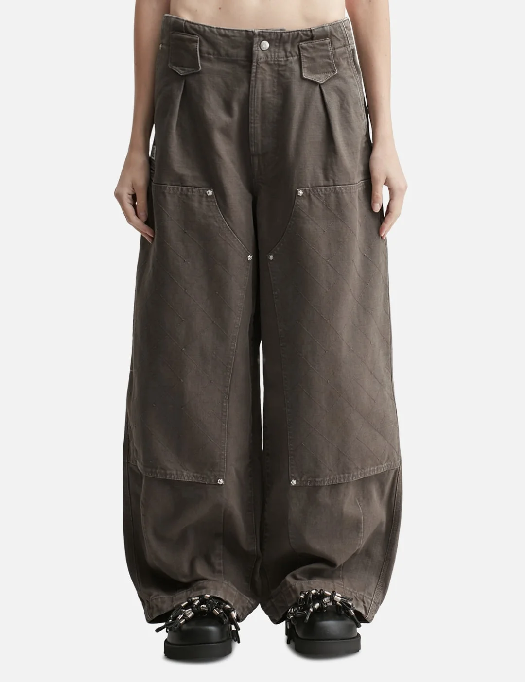 - Kenzo - 'KENZO Weave' Double Knee Pants - Heavyweight cotton exterior - Relaxed fit - Washed finish - Zip fly - Panelled overlays on legs with KENZO Weave stitching - Two side pockets - Logo embroidery on right thigh - Jet pocket on front and back - Two rear buttoned pockets - Color: Taupe - Material: 100% Cotton - See more Pants and Clothing - Model wears size 38 - Model measures: Height 186cm, Chest 34”/86cm, Waist 28”/71cm, Hip 36”/91cm - Model wears size 38 - Model measures: Height 177cm, Chest 32”/81cm, Waist 23.5”/59.7cm, Hip 33’’/83.8cm - Vendor Code: FF65PA2469GU