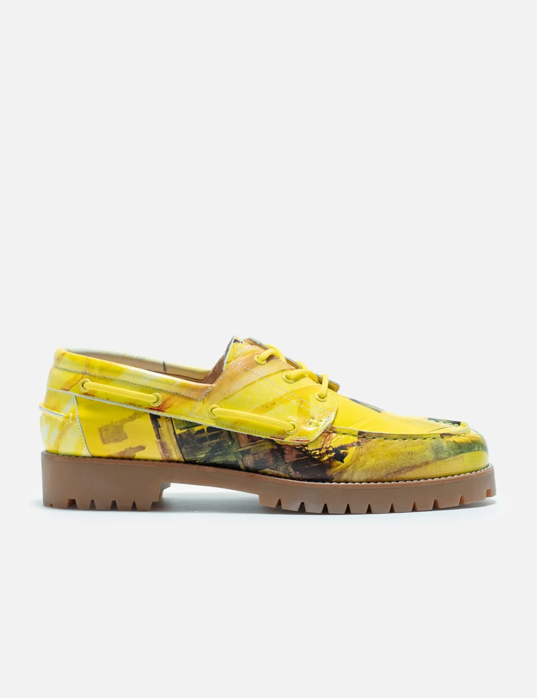 - KidSuper - Painted Lug Loafer - Pigskin leather upper - All over printed - Boat shoe style lacing - Lug rubberized sole - Color: Yellow - Material: Leather, Rubber - See more Casual Shoes and Shoes - Vendor Code: SS23STYLE#79