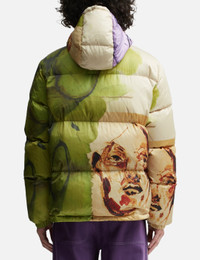 - KidSuper - Printed Mismatched Shiny Puffer - Hooded - Down construction - Zip closure - Two side pockets - Elasticated cuffs - Drawcord hem - Color: Multicolor - Material: Polyester; Filling: 80% Duckdown, 20% Duck Feather - See more Jackets and Clothing SIZING - Model wears size M - Model measures: Height 188cm, Chest 36”/90cm, Waist 32”/83cm, Hip 37”/93cm