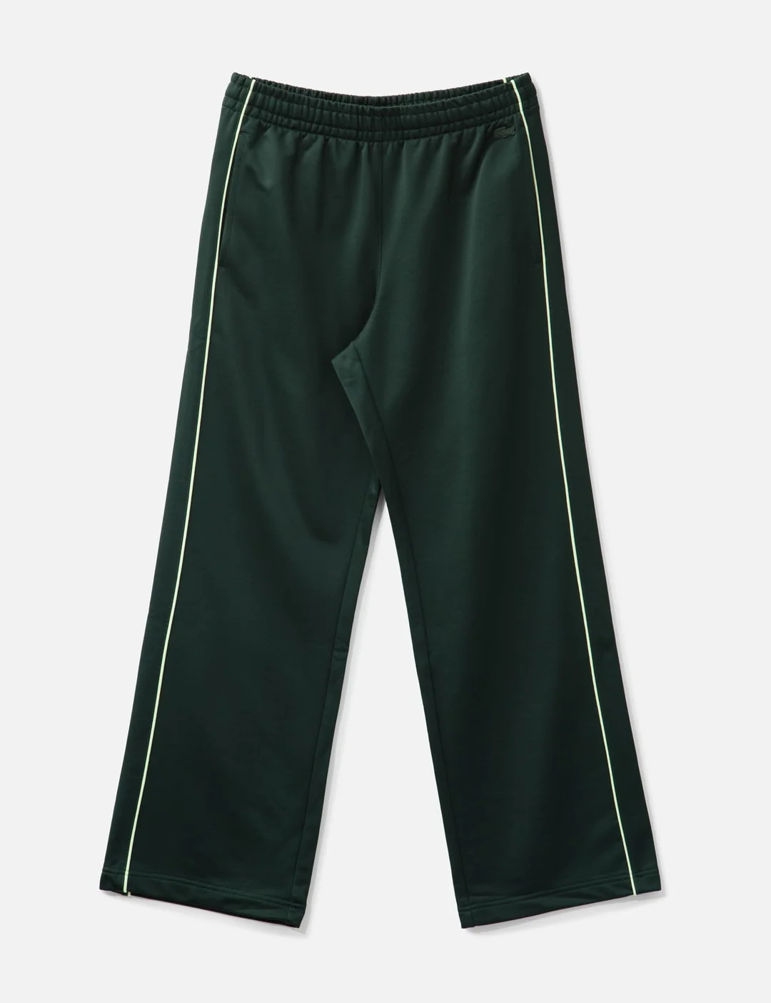 - Lacoste - Loose Fit Satin Sweatpants - Made of cotton-blend fleece - Satin-like finish - Loose fit - Adjustable waistband with drawstring - Contrast trim down leg - Tonal logo embroidery below waistline - Two side pockets - Straight hem - Color: Forest Green / YZP - Material: 55% Polyester, 45% Cotton - See more Pants and Clothing - Model wears size 4 - Model measures: Height 187cm, Chest 34”/84cm, Waist 26”/67cm, Hip 36”/88cm - Vendor Code: XH5685