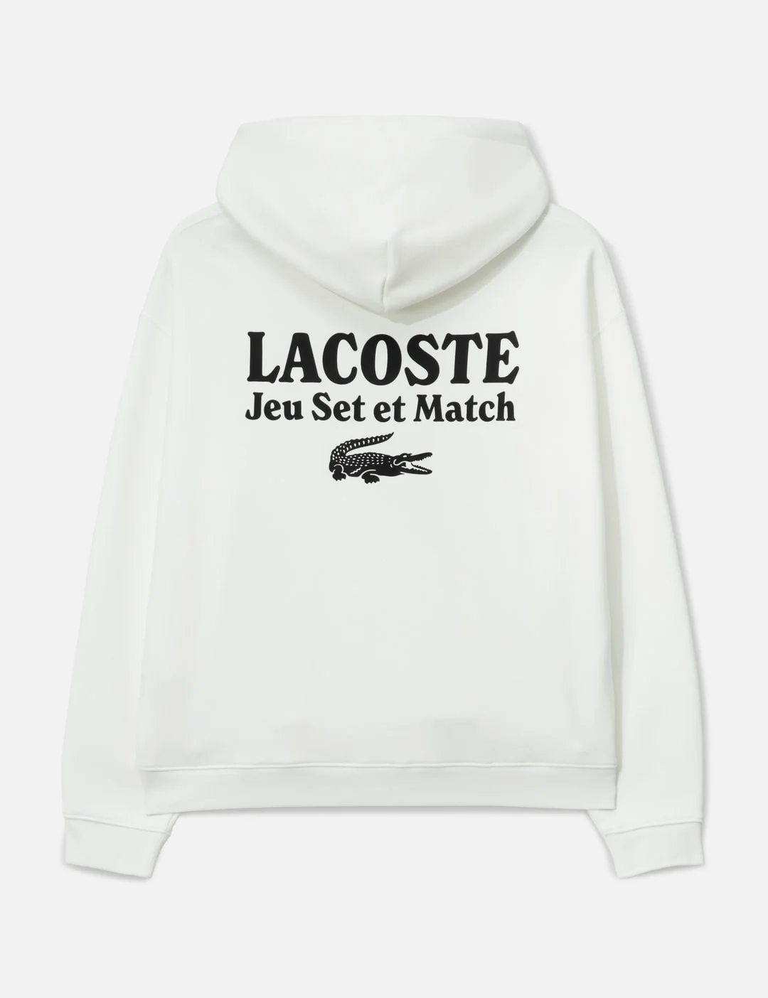 - Lacoste - Men's Multi Print Fleece Hoodie - Made of organic cotton fleece - Loose fit - Dropped shoulders - Adjustable hood with branded drawcord - Ribbed cuffs and hem - Printed text and embroidered crocodile logo at chest - Kangaroo pocket - Printed logo at back - Color: 70V - Flour - Material: 100% Cotton - See more Hoodies and Clothing - Model wears size 5 - Model measures: Height 186cm, Chest 34”/86cm, Waist 28”/71cm, Hip 36”/91cm - Vendor Code: SH5947