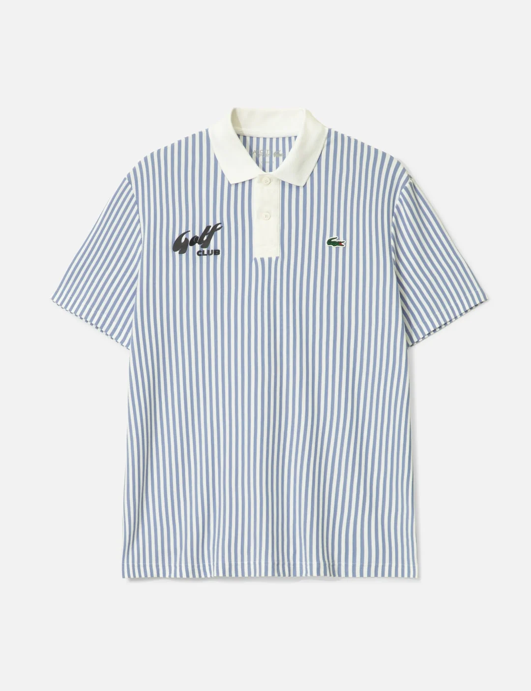 - Lacoste - Men's Thermo-Regulating Striped Golf Polo - Relaxed fit - Made of polyamide and organic cotton blend stretch pique - Pointed collar - Stripe patterns all over - Golf print on chest - Emana® temperature-regulating technology - UPF 50 protection - Color: A7I - Delphinium/White - Material: 59% Polyamide, 41% Cotton - See more Polos and Clothing - Vendor Code: DH4803