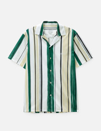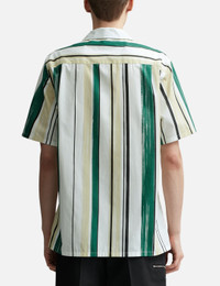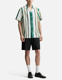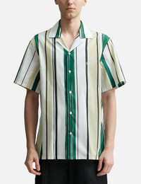 - Lanvin - Bowling Shirt With Printed Stripes - Striped bowling shirt - Loose fit - Notched collar - Short sleeves - Lanvin fabric patch in the same print embroidered in front - Made in Portugal - Color: Bottle - Material: 100% Cotton - See more Shirts and Clothing SIZING - Model wears size M - Model measures: Height 186cm, Chest 34”/86cm, Waist 28”/71cm, Hip 36”/91cm