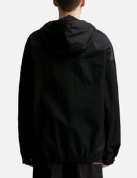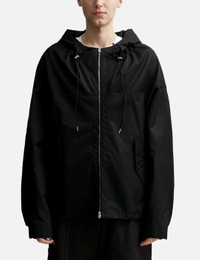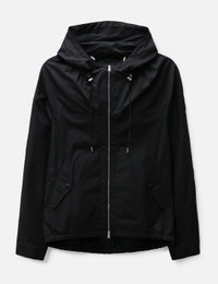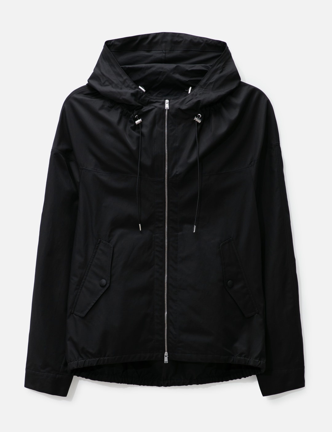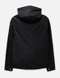 - Lanvin - Hooded Windbreaker - Loose fit - Hood with double drawstrings - Front zip closure - Flap pockets with snap closure - Silicone patch in back with logo - Made in Romania - Color: Black - Material: 58% Cotton , 38% Polyamide , 4% Polyurethane - See more Jackets and Clothing SIZING - Model wears size 46 - Model measures: Height 186cm, Chest 34”/86cm, Waist 28”/71cm, Hip 36”/91cm