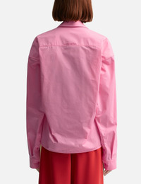 - Lesugiatelier - Asymmetric Collar Shirt - Relaxed fit long sleeve shirt - Voluminous, oversized silhouette - Asymmetric, unstructured collar - Front button-up closure - Singular chest pocket - Embroidered detailing at back yoke - Color: Pink - Country Of Origin: KR - Material: 100% Cotton - See more Shirts and Clothing SIZING - Model wears size OS - Model measures: Height 173cm, Chest 32”/81cm, Waist 23’’/58.42cm, Hip 34”/86.4cm