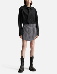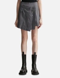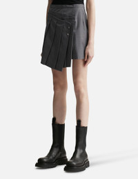 - Lesugiatelier - Fold-detail Pleats Mini Skirt - High-rise - Wrap construction - Unbalanced pleated detailing - Layered style pleated design - Dot badges accent at front - Zip closure at back - Color: Grey - Country Of Origin: KR - Material: Polyester 65%, Rayon 35% - See more Skirts and Clothing SIZING - Model wears size 1 - Model measures: Height 177cm, Chest 32”/81cm, Waist 23.5”/59.7cm, Hip 33’’/83.8cm
