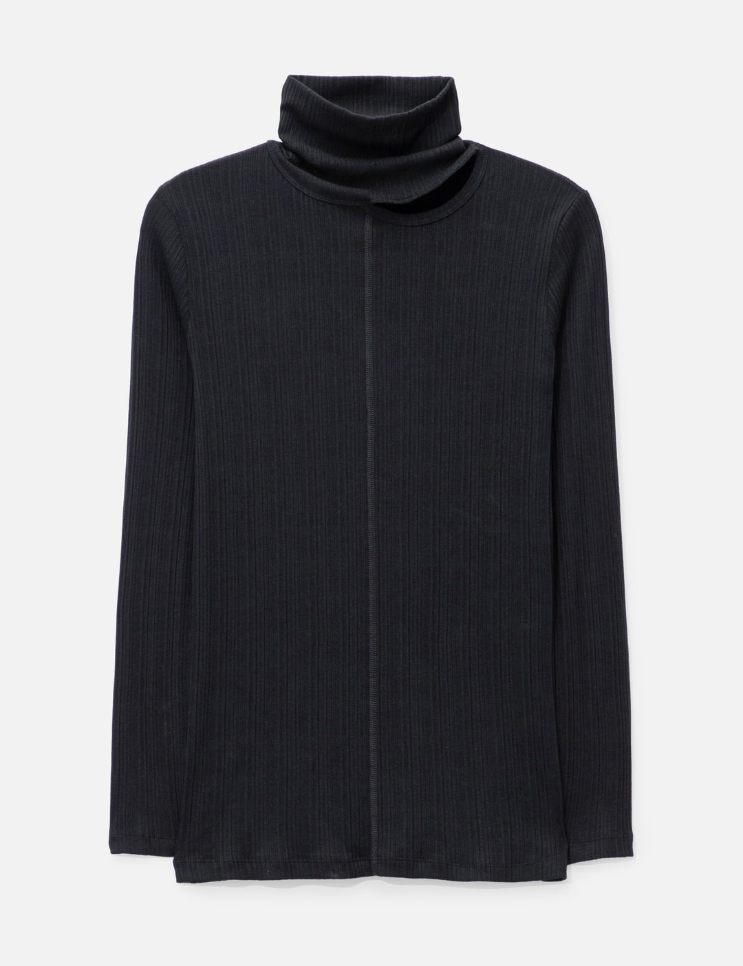 - LGN LOUIS GABRIEL NOUCHI - Turtleneck with Asymmetrical Opening - Fitted - Ribbed jersey fabric - Slit details around the neckline - Tone-on-tone sports seams - Straight hem - Color: Black - Material: 96% Cotton, 4% Elastane - See more LS T-Shirts, T-Shirts and Clothing SIZING - Model wears size M - Model measures: Height 190cm, Chest 36"/94cm, Waist 29”/74cm, Hip 37"/94cm