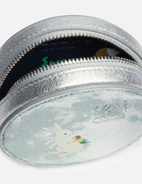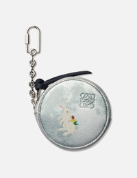 - Loewe - Bunny large cookie coincase - Soft metallic nappa calfskin - Bunny graphic print - Zip coin compartment with contrasting knot zip pull - Color: Silver - Material: Leather - See more Wallets and Accessories SIZING Approximate dimensions: - Diameter: 8.5cm - Depth: 3cm - Zipper Slider: 10cm