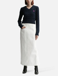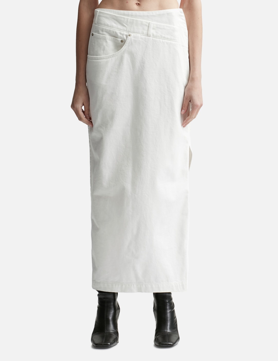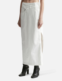 - Loewe - Deconstructed Skirt - Made of medium-weight cotton denim - Regular fit - Mid-length - High waist - Asymmetric design - Belt loops - Side zip closure - Patch and coin pocket on front - Single rear patch pocket - Diagonal slit at the back - Color: White - Material: Cotton - See more Skirts and Clothing SIZING - Model wears size 36 - Model measures: Height 177cm, Chest 32"/81cm, Waist 23.5"/59.7cm, Hip 33’’/83.8cm
