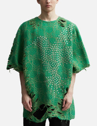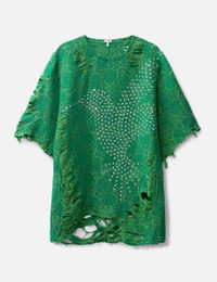 - Loewe - Embellished Top - Lightweight linen and silk jacquard fabric - Distressed by hand - Bird motif embellishment at front - Due to the hand distressed process each piece is unique - Color: Green - Material: Linen, Silk - See more SS T-Shirts, T-Shirts and Clothing SIZING - Model wears size S - Model measures: Height 187cm, Chest 36”/91cm, Waist 28”/72cm, Hip 36”/91cm