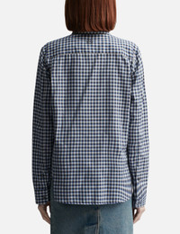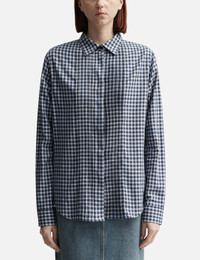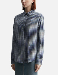 - Loewe - Pleated Shirt - Made of lightweight shirting cotton - Regular fit - Short length - Classic collar - Blurred check pattern - Pintuck detailing at the front - Concealed button front closure - Buttoned cuffs - Anagram embroidery placed at the back - Color: Blue/ White/ Black - Material: Cotton - See more Shirts and Clothing SIZING - Model wears size 36 - Model measures: Height 177cm, Chest 32"/81cm, Waist 23.5"/59.7cm, Hip 33’’/83.8cm