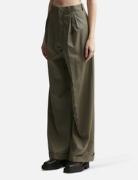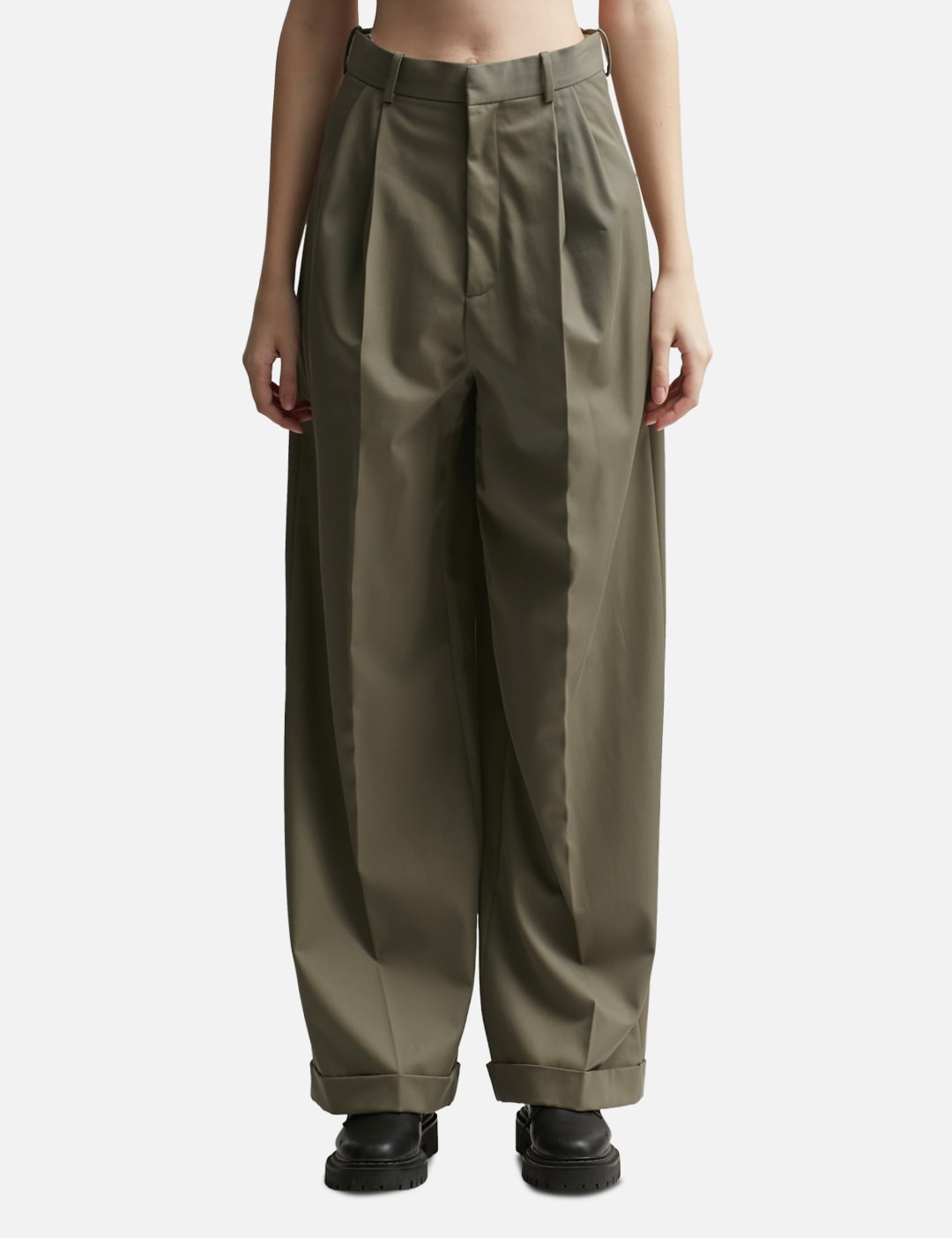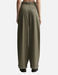 - Loewe - Pleated Trousers - Lightweight cotton-silk blend fabric - Zip fly - Two side pockets; one rear pocket - Pleated front - Tonal embroidered logo at rear waist - Long length - Roll-up hem - Color: Khaki Brown - Material: 90% Cotton, 10% Silk - See more Pants and Clothing SIZING - Model wears size 36 - Model measures: Height 180cm, Chest 33’’/84cm, Waist 23’’/58.42cm, Hip 36’’/91cm