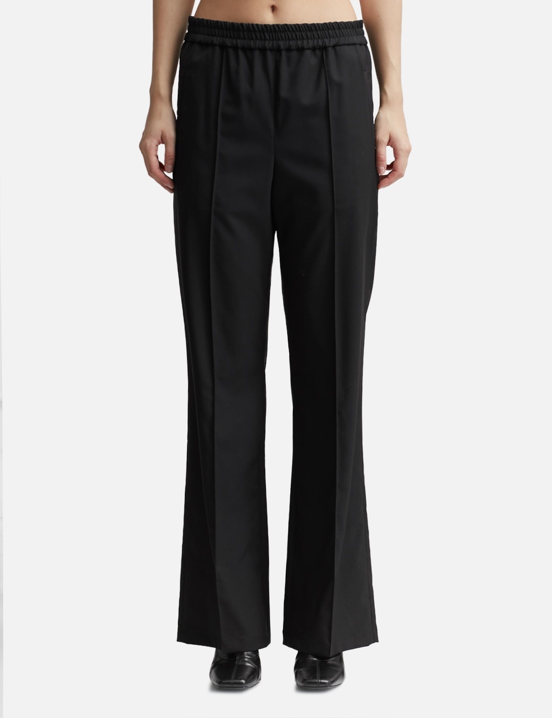 - Loewe - Tracksuit Trousers - Lightweight wool fabric - Elasticated waistband - Front stitched crease - Two side pockets; one rear welt pocket - Color: Black - Material: 100% Wool - See more Pants and Clothing SIZING - Model wears size S - Model measures: Height 179cm, Chest 33”/83cm, Waist 24.8”/63cm,Hip 35’’/89cm