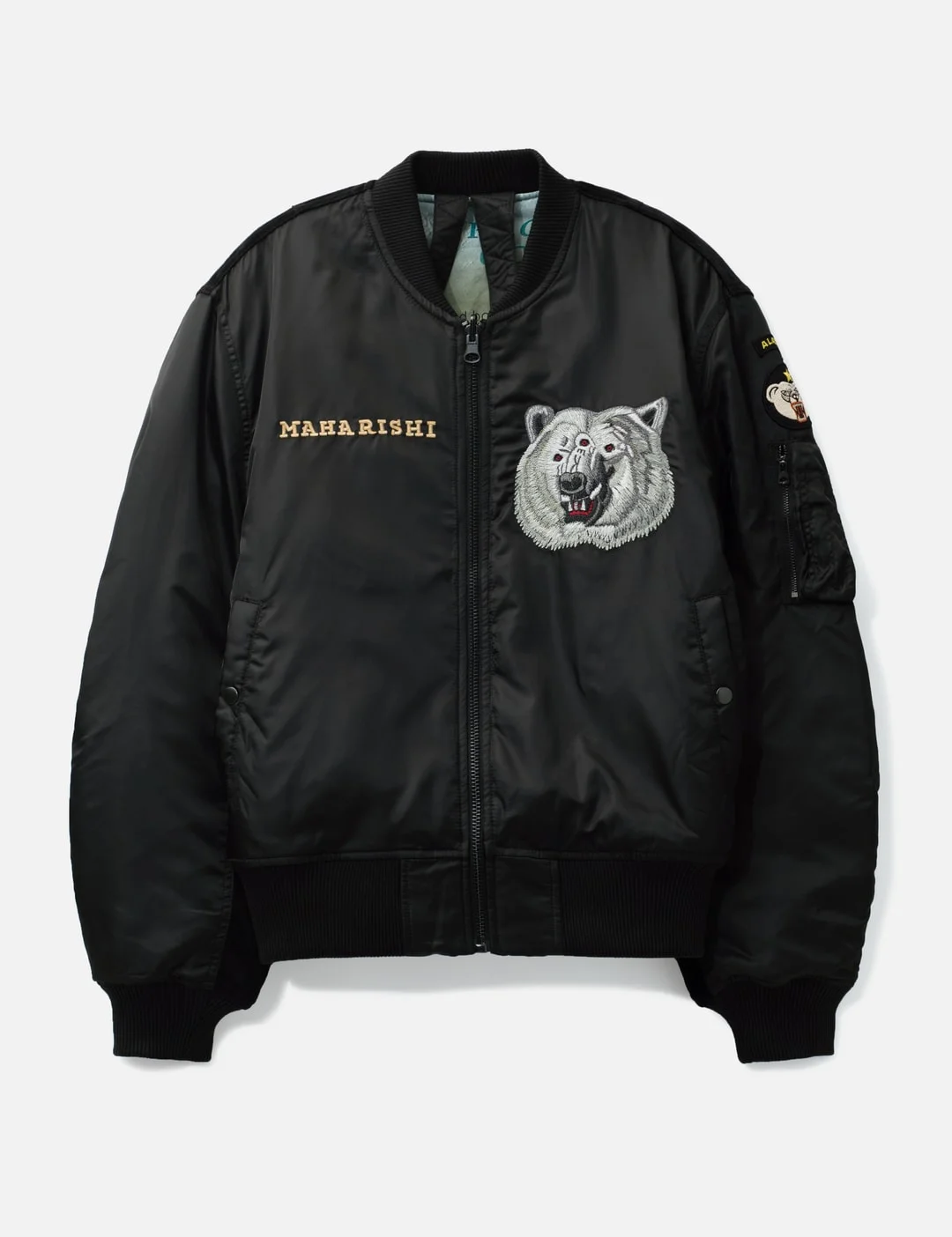 - Maharishi - The Alaskan Tour Embroidered Velvet Jacket - Made of cotton velvet - Ribbed collar, sleeves and hem - Zipper closure - Sleeve patches - Sleeve zipper pocket - Hand-machined embroidery on front and back - Two snap button pockets - Embroidered Bering Strait artwork on the back - Bering Strait graphic lining - Internal carry straps - One inner snap pocket - Color: Black - Material: 100% Cotton; 100% Nylon - See more Jackets and Clothing - Model wears size M - Model measures: Height 186cm, Chest 34”/86cm, Waist 28”/71cm, Hip 36”/91cm - Vendor Code: 7086