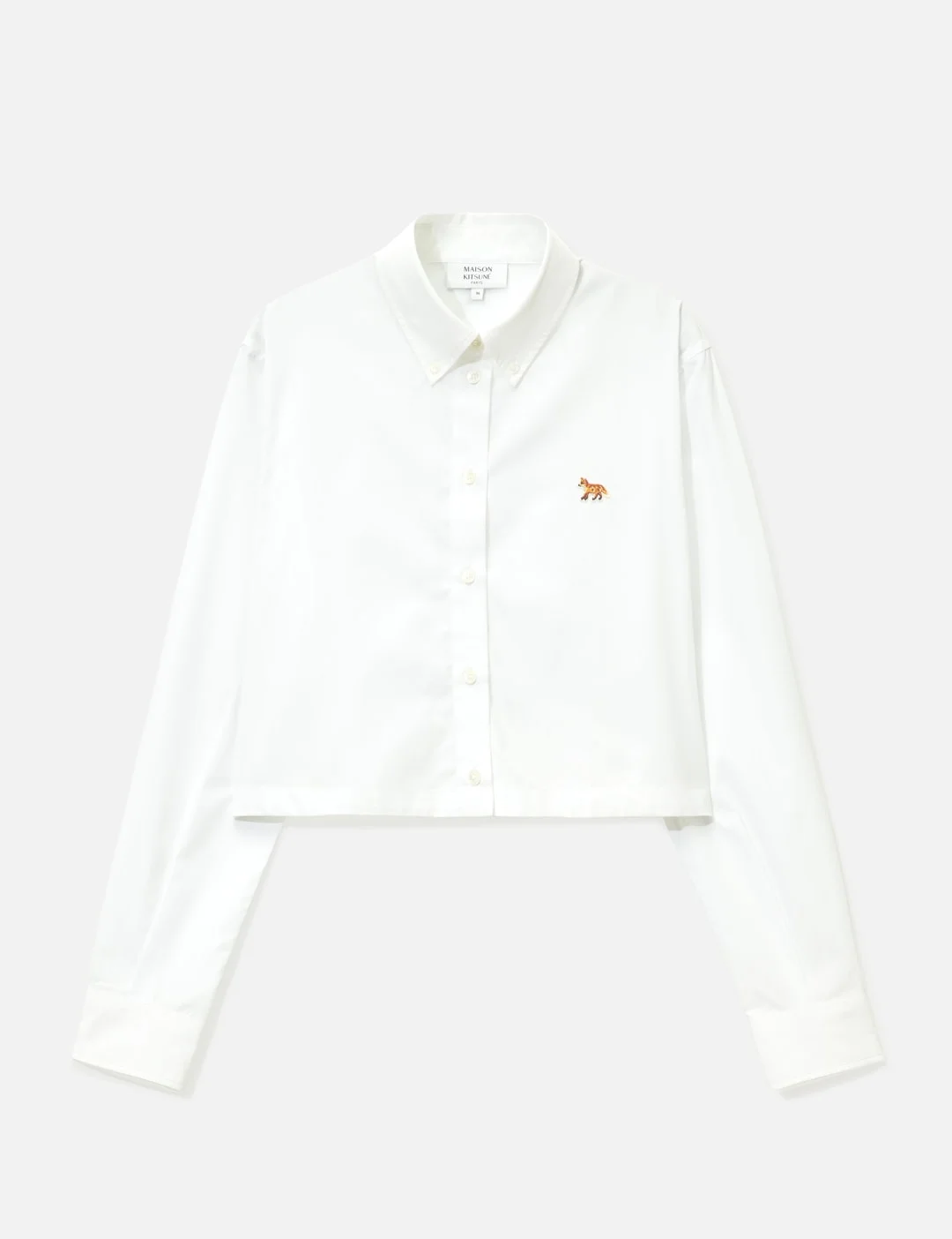 - Maison Kitsune - Baby Fox Cropped Shirt - Cropped fit - Made of cotton - Classic collar - American button placket with Maison Kitsune engraved buttons - Long sleeves finished-off with buttoned cuffs - Baby Fox embroidered patch on the chest - Color: White - Material: 100% Cotton - See more Shirts and Clothing - Vendor Code: QW00402WC0026