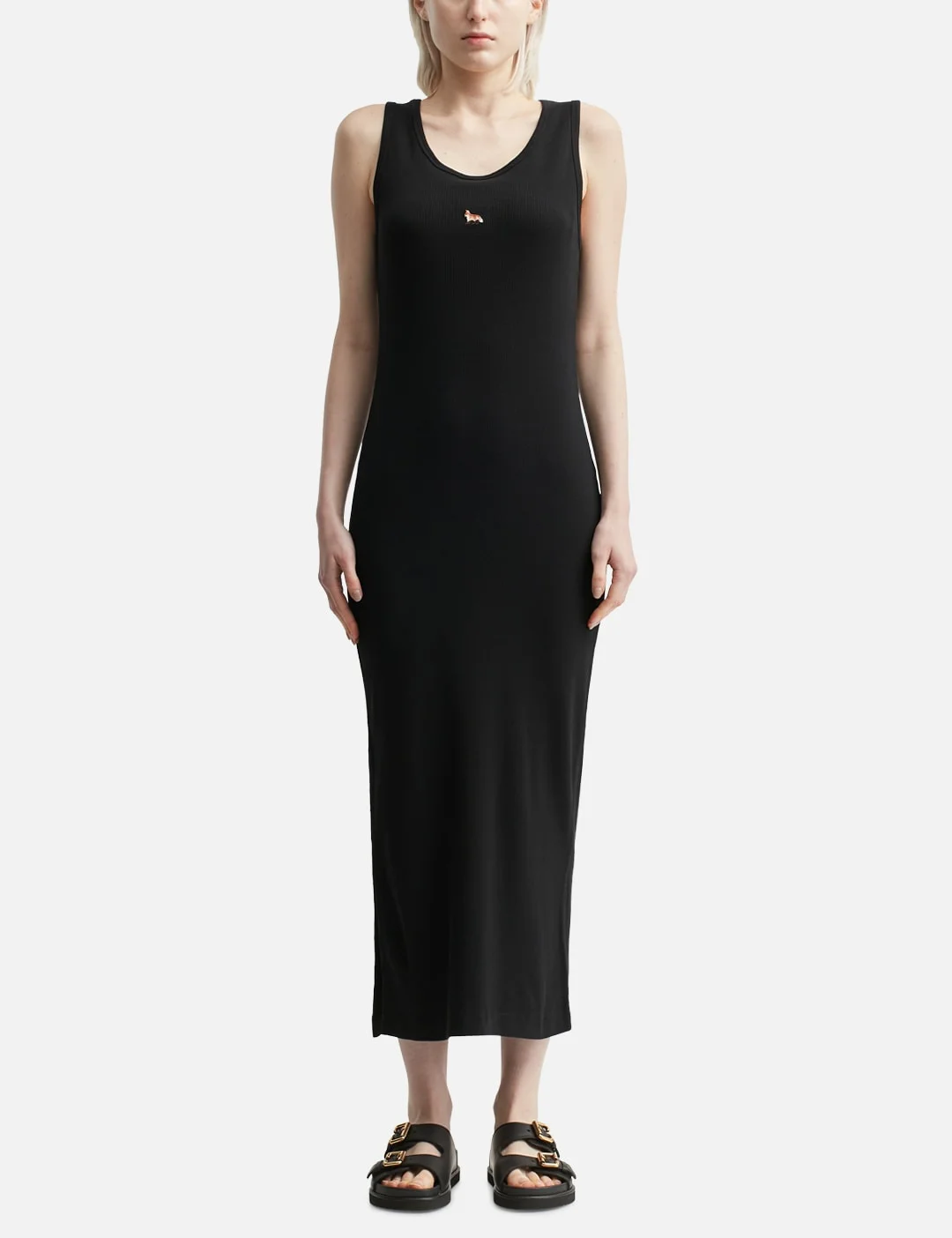 - Maison Kitsune - Baby Fox Ribbed Tank Dress - Plain ribbed cotton fabric - Scoop neckline - Baby Fox patch at front - Side slit - Color: Black - Material: 100% Cotton - See more Dresses and Clothing - Model wears size S - Model measures: Height 177cm, Chest 31.9’’/81cm, Waist 23.6’’/60cm, Hip 35.8’’/91cm - Vendor Code: MW01602KJ0125P199