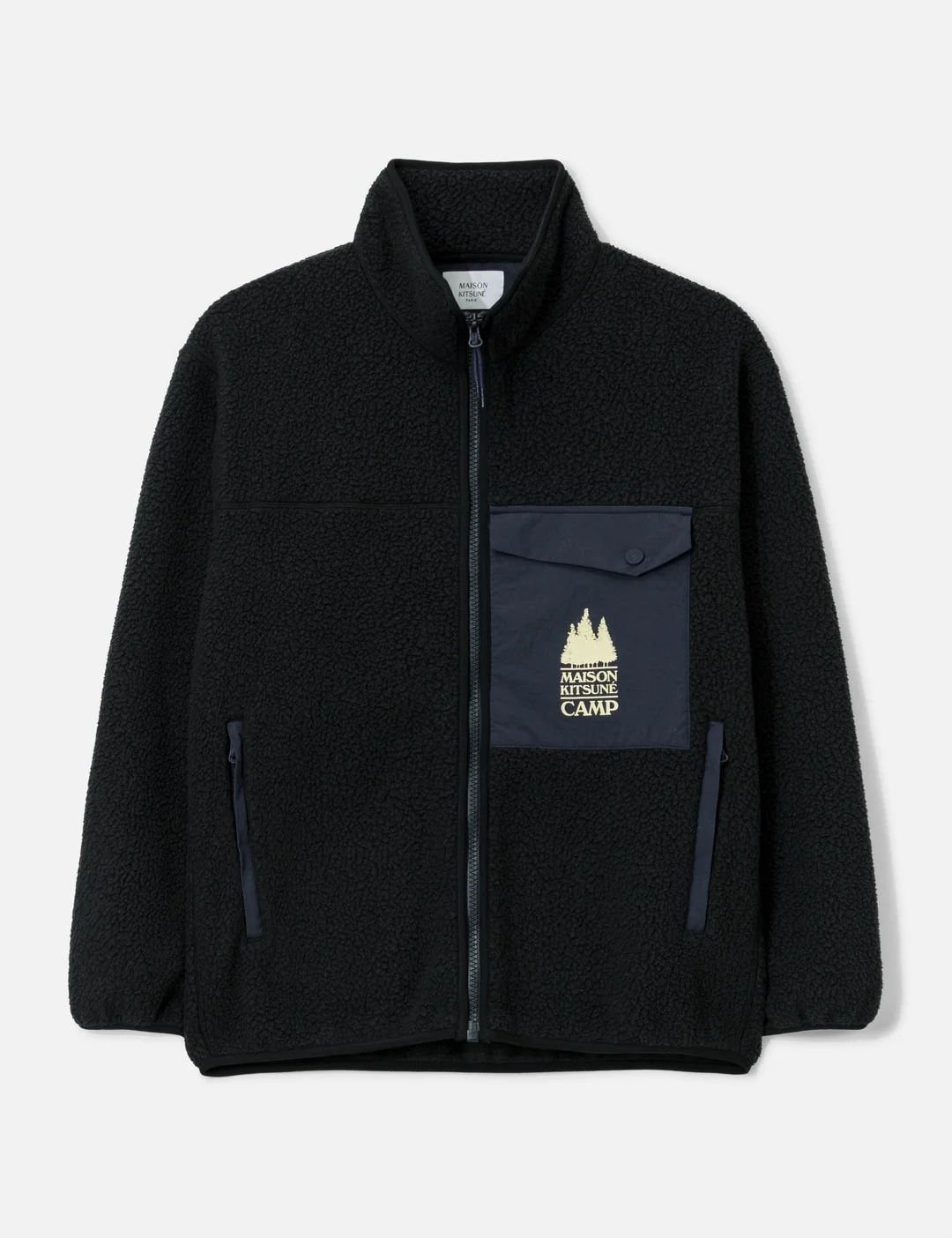 - Maison Kitsune - Casual Fleece Jacket - Comfort fit - Zipper closure - Nylon chest snap pocket - Maison Kitsune Camp logo print on chest - Two zipped side pockets - Nylon patch on bottom sleeves - Color: Black - Material: Main Material: 100% Polyester; Secondary Material: 100% Polyamide - See more Jackets and Clothing - Model wears size M - Model measures: Height 186cm, Chest 34”/86cm, Waist 28”/71cm, Hip 36”/91cm - Model wears size S - Model measures: Height 177cm, Chest 32”/81cm, Waist 23.5”/59.7cm, Hip 33’’/83.8cm - Vendor Code: PM02136WM2031