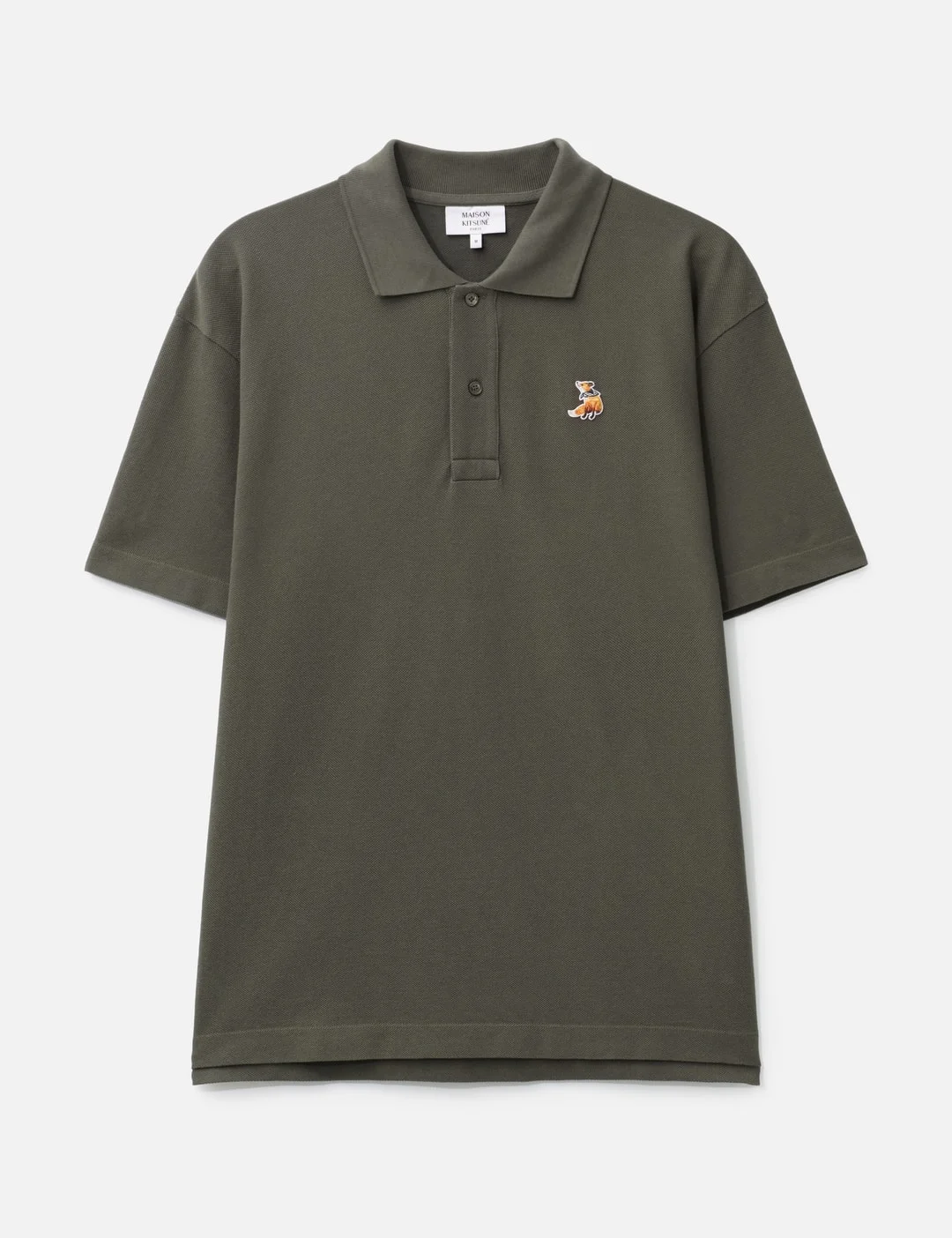 - Maison Kitsune - Dreaming Fox Comfort Polo - Made of soft organic cotton pique - Comfort fit - Polo collar with button placket - Maison Kitsune engraved buttons - Short sleeve - Dreaming Fox embroidered patch on the chest - Made in Portugal - Color: Beluga - Material: 100% Organic Cotton - See more Polos and Clothing - Model wears size M - Model measures: Height 186cm, Chest 34”/86cm, Waist 28”/71cm, Hip 36”/91cm - Vendor Code: QM00201KP0001