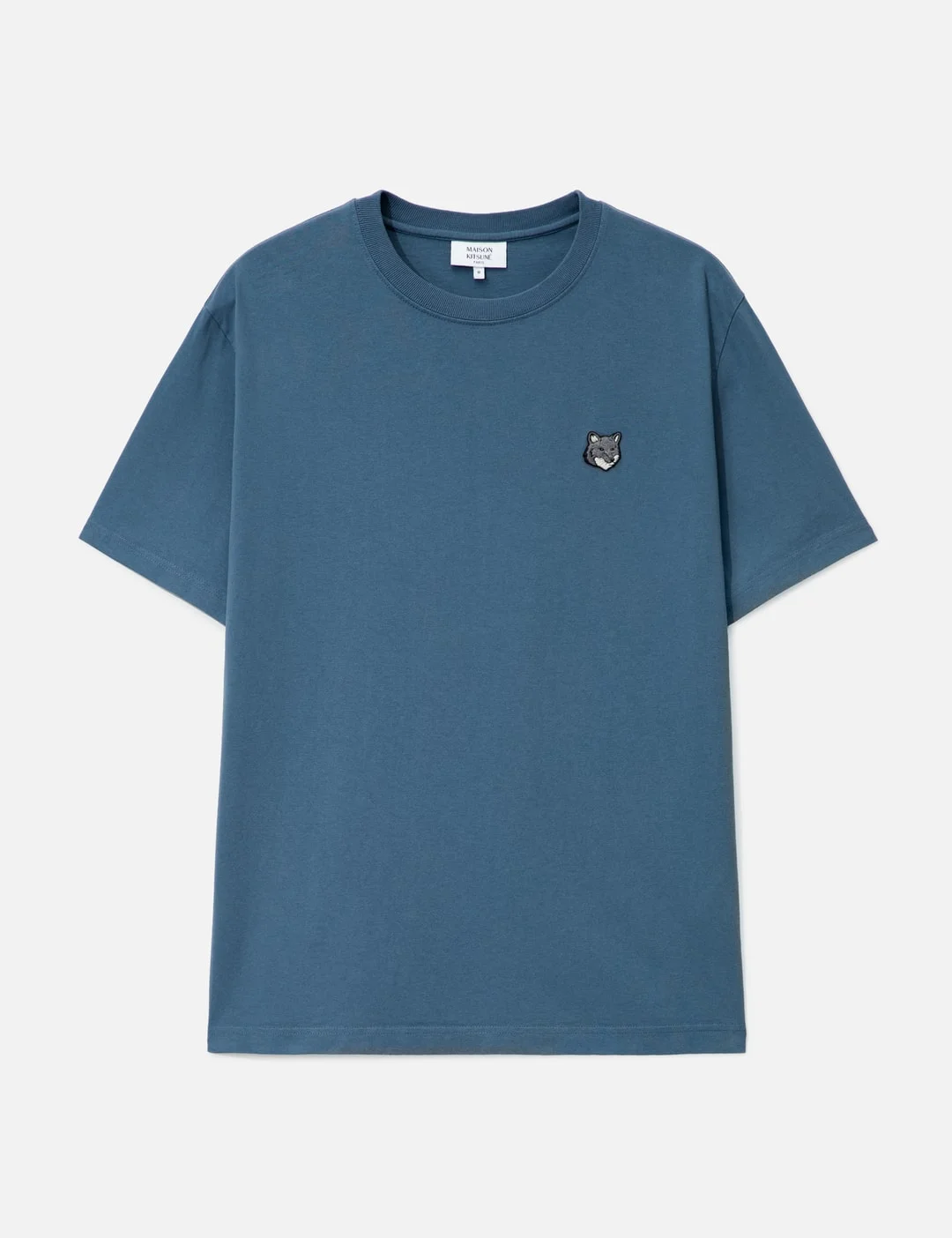 - Maison Kitsune - Fox Head Comfort T-Shirt - Made of 280g cotton jersey - Comfort fit - Ribbed crewneck - Short sleeves - Fox head embroidery on the chest - Straight hem - Color: Seine Blue - Material: 100% Cotton - See more SS T-Shirts, T-Shirts and Clothing - Model wears size M - Model measures: Height 186cm, Chest 34”/86cm, Waist 28”/71cm, Hip 36”/91cm - Vendor Code: PM00108KJ7025
