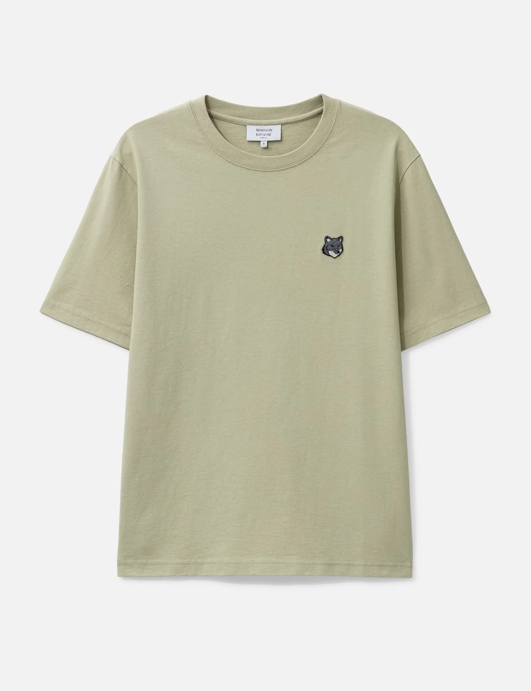 - Maison Kitsune - Fox Head Comfort T-Shirt - Comfort fit - Made of 280g cotton skate jersey - Ribbed crewneck - Short sleeves - Grey Fox Head embroidered patch on the chest - Color: Tea Leaf - Material: 100% Organic Cotton - See more SS T-Shirts, T-Shirts and Clothing - Vendor Code: PM00108KJ7025
