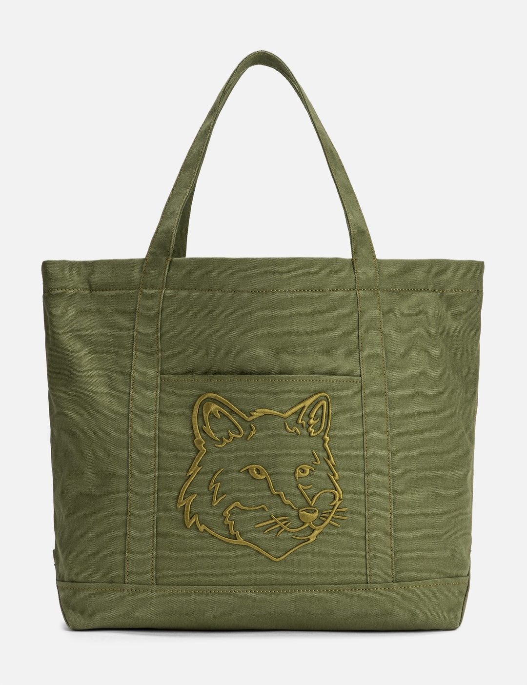 - Maison Kitsuné - Fox Head Large Tote - Durable canvas tote bag - Zip closure - Embroidered Fox Head at front - Color: Military Green - Material: 100% Cotton - See more Bags and Accessories SIZING Approximate dimensions: - Height: 33cm - Width: 38cm - Depth: 14cm - Strap Length: 18cm