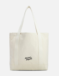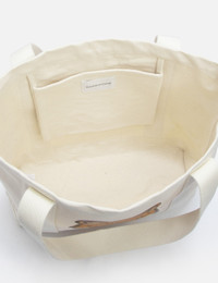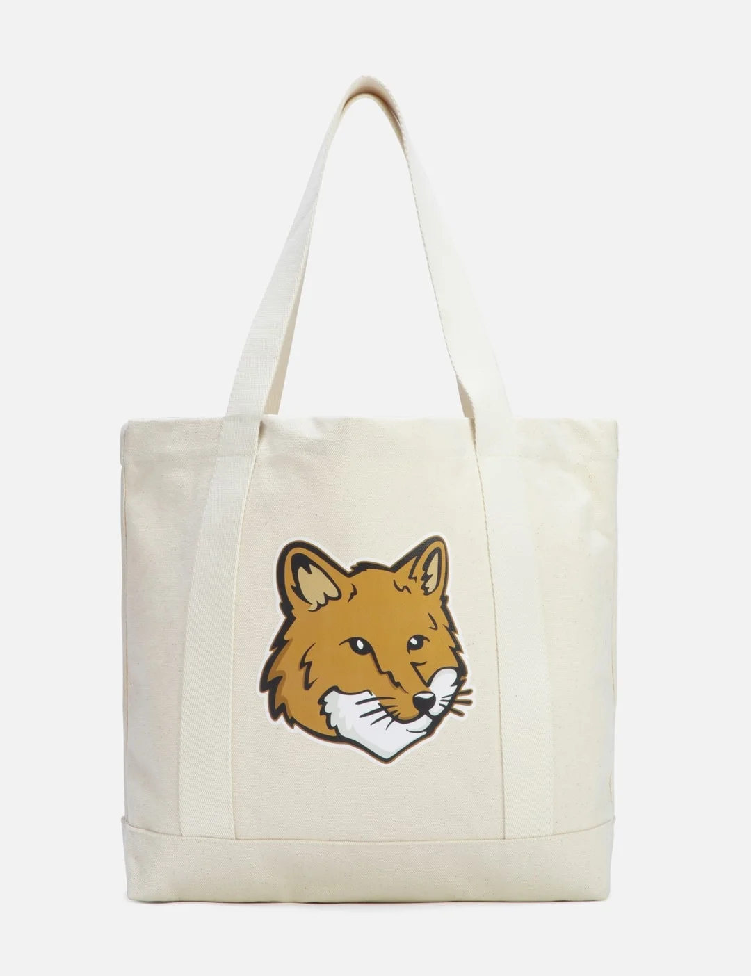 - Maison Kitsuné - Fox Head Tote Bag - Durable canvas fabric - Top handle with an open compartment - One small interior patch pocket - Fox Head logo at front - 'Hand-written' logo print at rear - Color: Ecru - Material: 100% Cotton - See more Tote Bags, Bags and Accessories SIZING Approximate dimensions: - Height: 32cm - Width: 42cm - Depth: 11cm - Strap Length: 21cm