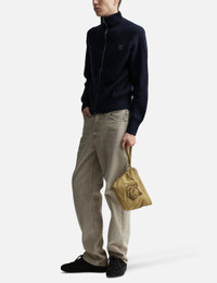 - Maison Kitsune - Fox Head Zipped Pouch - Embroidered Fox Head at front - Zip closure - Main compartment with one interior pocket - "Maison Kitsune Handwriting" embroidery at rear - Color: Chestnut - Material: 100% Cotton - See more Bags and Accessories SIZING Approximate dimensions: - Height: 18cm - Width: 24cm - Depth: 10cm - Handle Length: 17cm