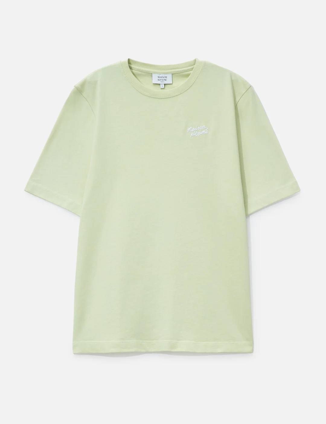 - Maison Kitsune - Maison Kitsune Handwriting Comfort T-Shirt - Comfort fit - Made of 240g cotton clean jersey - Ribbed crewneck - Short sleeves - Maison Kitsune Handwriting embroidery on the chest - Color: Aloe Green - Material: 100% Cotton - See more SS T-Shirts, T-Shirts and Clothing - Vendor Code: PW00114KJ0119