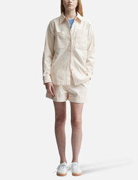 - Maison Kitsuné - Pleated Shorts - Classic cut - Concealed zip fly with button closure - Two slash front pockets - Two patch rear pockets - Maison Kitsuné embroidery in handwritten style on rear pocket - Color: Fresh Cotton - Material: 100% Cotton - See more Shorts and Clothing SIZING - Model wears size 38 - Model measures: Height 177cm, Chest 32.68’’/83cm, Waist 24.8’’/63cm, Hip 35.43’’/90cm