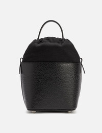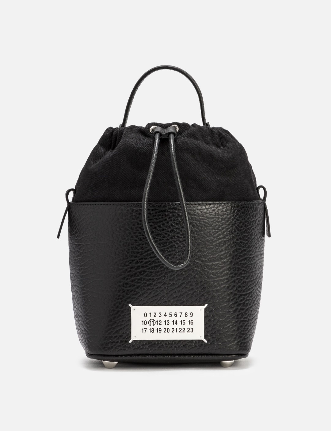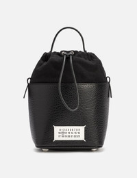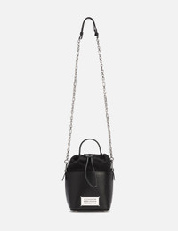 - Maison Margiela - 5AC Bucket Small - Made of grainy calf leather with soft touch - Detachable and adjustable chain and leather shoulder strap - Removable handle - Logo label at the front with four stitches - Drawstring closure - Internal logo stamping - Inner flat pocket - Metal feet - Cotton lining - Made in Italy - Color: Black - Material: Calf Leather; Lining: Cotton - See more Cross-Body Bags, Bags and Accessories SIZING Approximate dimensions: - Height: 22cm - Width: 15cm - Depth: 12cm - Handle Length: 7cm - Strap Length: 51cm