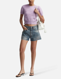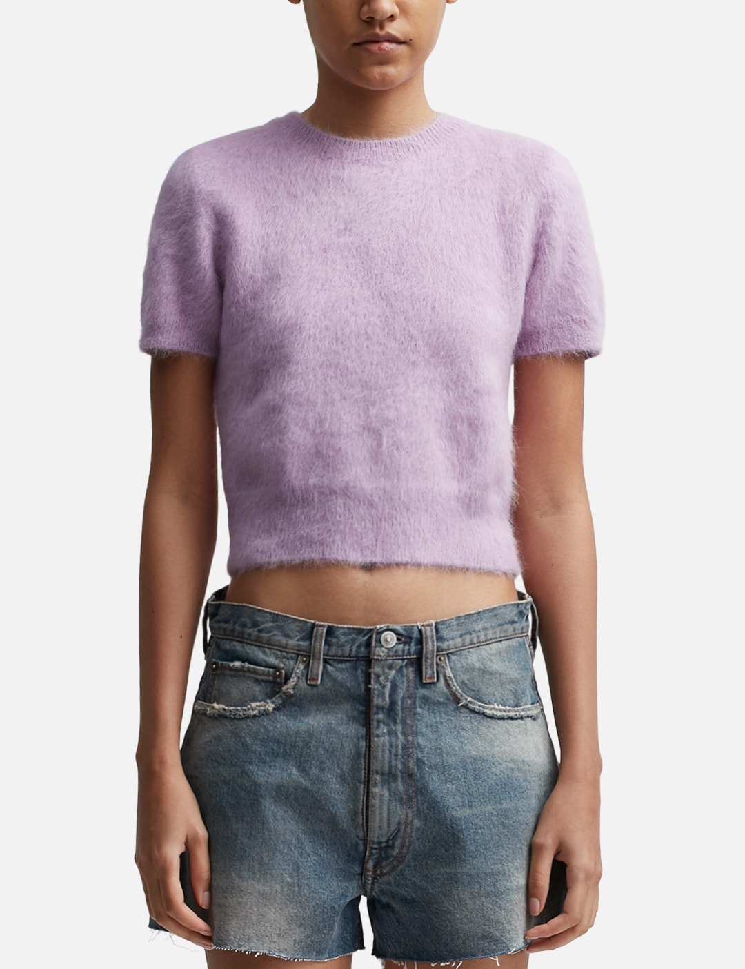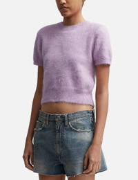 - Maison Margiela - Brushed Sweater - Brushed alpaca wool blend fabric - Round neckline - Short hem - Color: Purple - Material: 80% Alpaca, 20% Polyamide - See more Tops and Clothing SIZING - Model wears size S - Model measures: Height 177cm, Chest 29”/74cm, Waist 23.6”/60cm,Hip 34.6’’/88cm