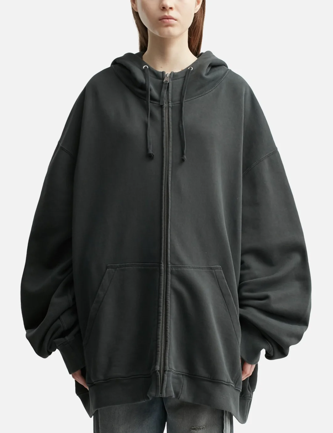 - Maison Margiela - Embroidered Logo Hoodie - Cotton jersey fabric - Adjustable hood - Zip closure - Ribbed cuffs - Signature 4-stitches at rear - Embroidered unfinished logo at rear - Color: Washed Black - Material: 100% Cotton - See more Hoodies and Clothing - Model wears size M - Model measures: Height 186cm, Chest 34”/86cm, Waist 28”/71cm, Hip 36”/91cm - Vendor Code: S50HG0047M25017969
