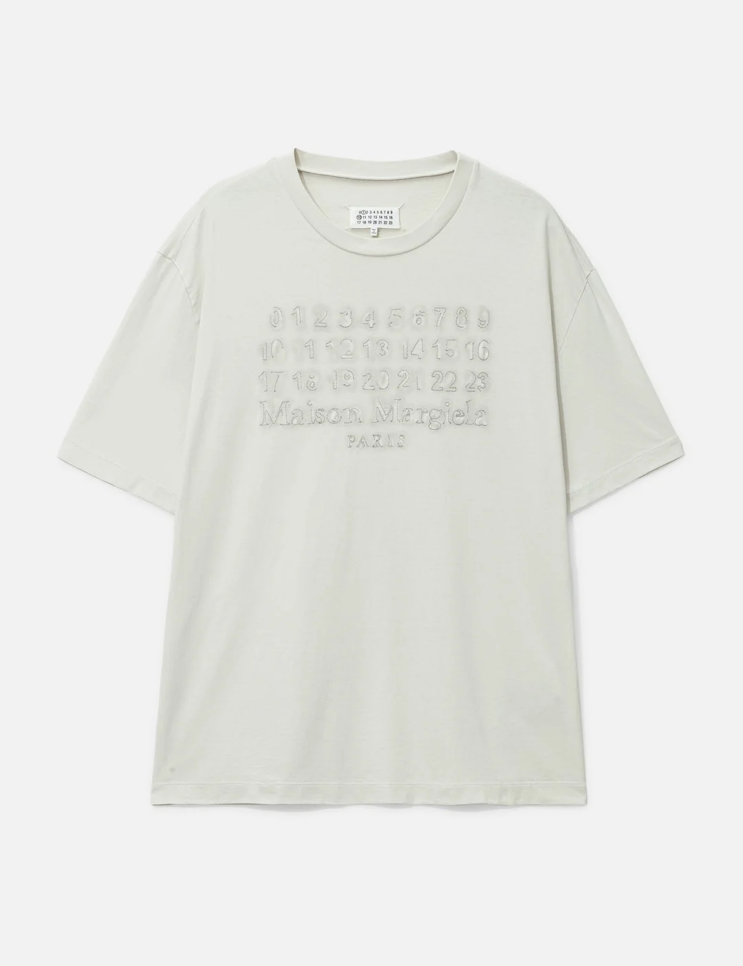 - Maison Margiela - Embroidered Logo T-shirt - Worn-in aesthetic - Embroidered number logo with - Signature 4-stitches at rear - Straight hem - Color: Ecru - Material: 100% Cotton - See more SS T-Shirts, T-Shirts and Clothing - Model wears size M - Model measures: Height 186cm, Chest 34”/86cm, Waist 28”/71cm, Hip 36”/91cm - Vendor Code: S50GC0705S24567103