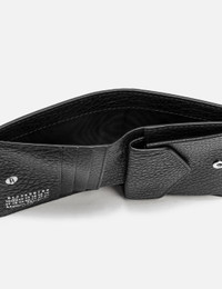 - Maison Margiela - Four Stitches Pocket Cardholder - Snap button closure - Four stitches at the back - Inside logo stamping - Inside snap button closure pocket - Inside flat pocket - Five card slots - Color: Black - Material: Grainy Calf Leather - See more Wallets and Accessories SIZING Approximate measurement: - Width: 9cm / 17.5cm (Open) - Length: 10cm