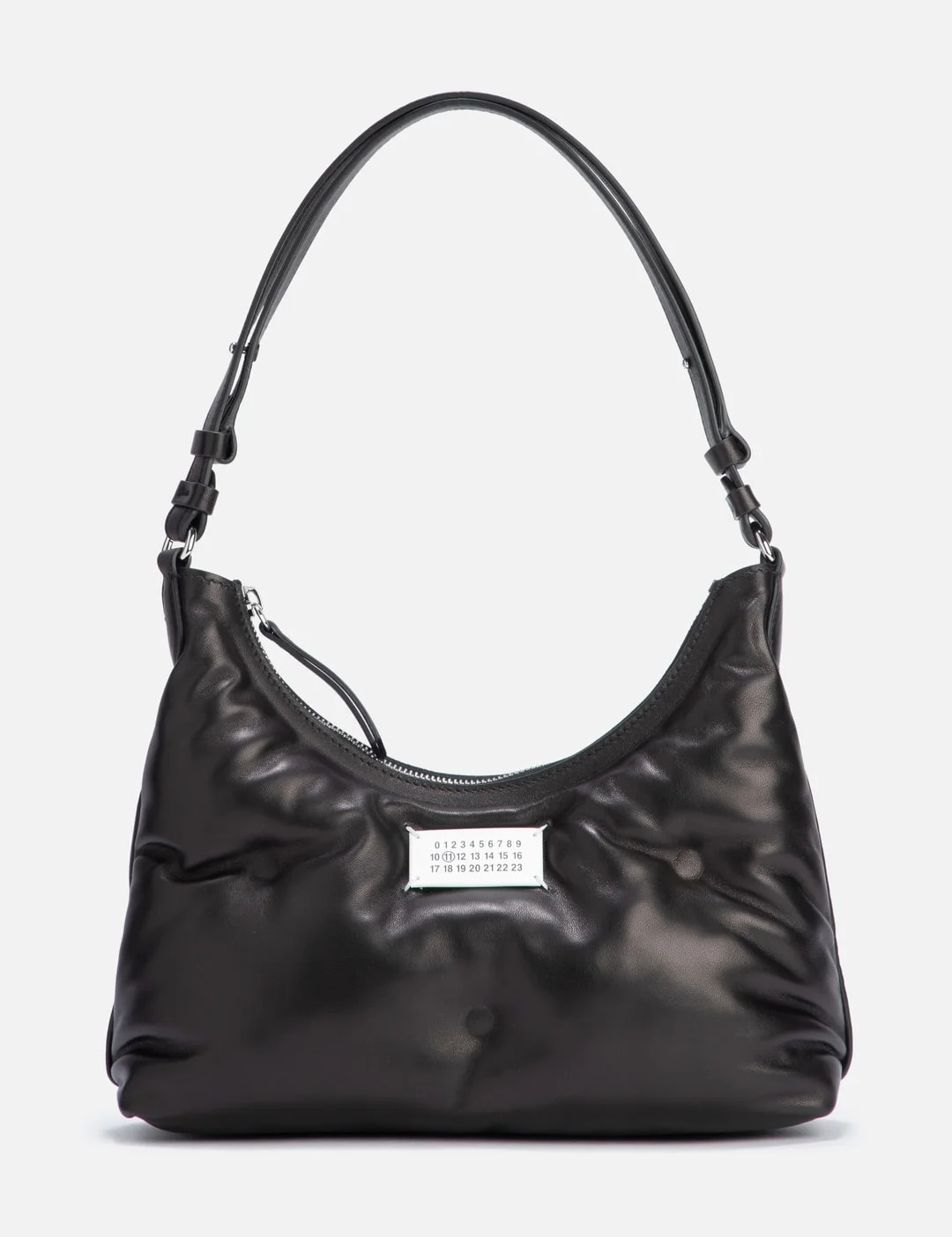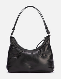- Maison Margiela - Glam Slam Hobo Small - Made of full-grain nappa leather - Polished metal hardware - Adjustable calf leather shoulder strap - Zip closure - Quilted effect through heat sealing - Logo label on the front - Inner zip pocket - Four stitches on the back - Inner logo stamp - Nylon lining - Made in Italy - Color: Black - Material: Nappa Leather; Nylon - See more Shoulder Bags, Bags and Accessories SIZING Approximate dimensions: - Height: 16cm - Width: 27cm - Depth: 7cm - Strap Length: 27cm