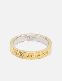 - Maison Margiela - Numerical Diamond Ring - Polished yellow gold plating over a sterling silver - Slim ring - Engraved numbers and lab-grown diamond - Made in Italy - Color: Gold - Material: 100% Silver; 100% Synthetic Diamond - See more Rings, Jewelry and Accessories - Size 2 - Inside Diameter: 1.5cm - Size 3 - Inside Diameter: 1.6cm - Size 5 - Inside Diameter: 1.7cm - Size 6 - Inside Diameter: 1.8cm - Size 7 - Inside Diameter: 1.9cm - Size 8 - Inside Diameter: 2.0cm - Vendor Code: SM1UQ0121P8864702
