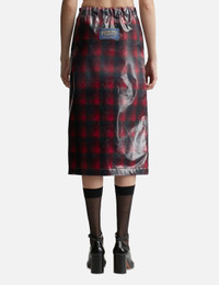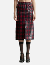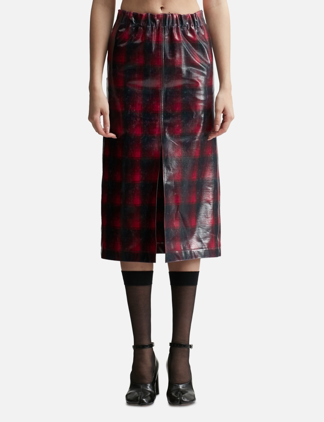 - Maison Margiela - Pendleton lacquer skirt - Made in coated Pendleton check wool - Shiny finished - Midi skirt - Elastic waistband - Front slit - Two side pockets - Four stitches and Pendleton jacquard label at the back - Made in Italy - Color: Red/ Black - Material: 100% Wool; Coating: 100% Polyurethane; Pocket Lining: 100% Cotton - See more Skirts and Clothing SIZING - Model wears size 40 - Model measures: Height 181cm, Chest 33”/84cm, Waist 24”/61cm, Hip 35”/90cm