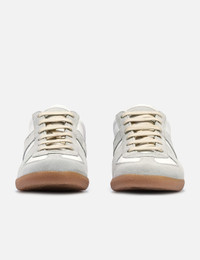 - Maison Margiela - Replica Sneakers - Nappa leather and crust leather upper - Lace-up closure - Maison Margiela logo label on the tab - White stitching at the back - Replica label inside - All-over Maison Margiela logo insole - Rubber outsole - Made in Italy - Color: Dirty White - Material: Upper: 100% Calf Leather; Contrast: 100% Calf Leather; Lining: 100% Cotton; Sole: 100% Rubber - See more Sneakers and Shoes
