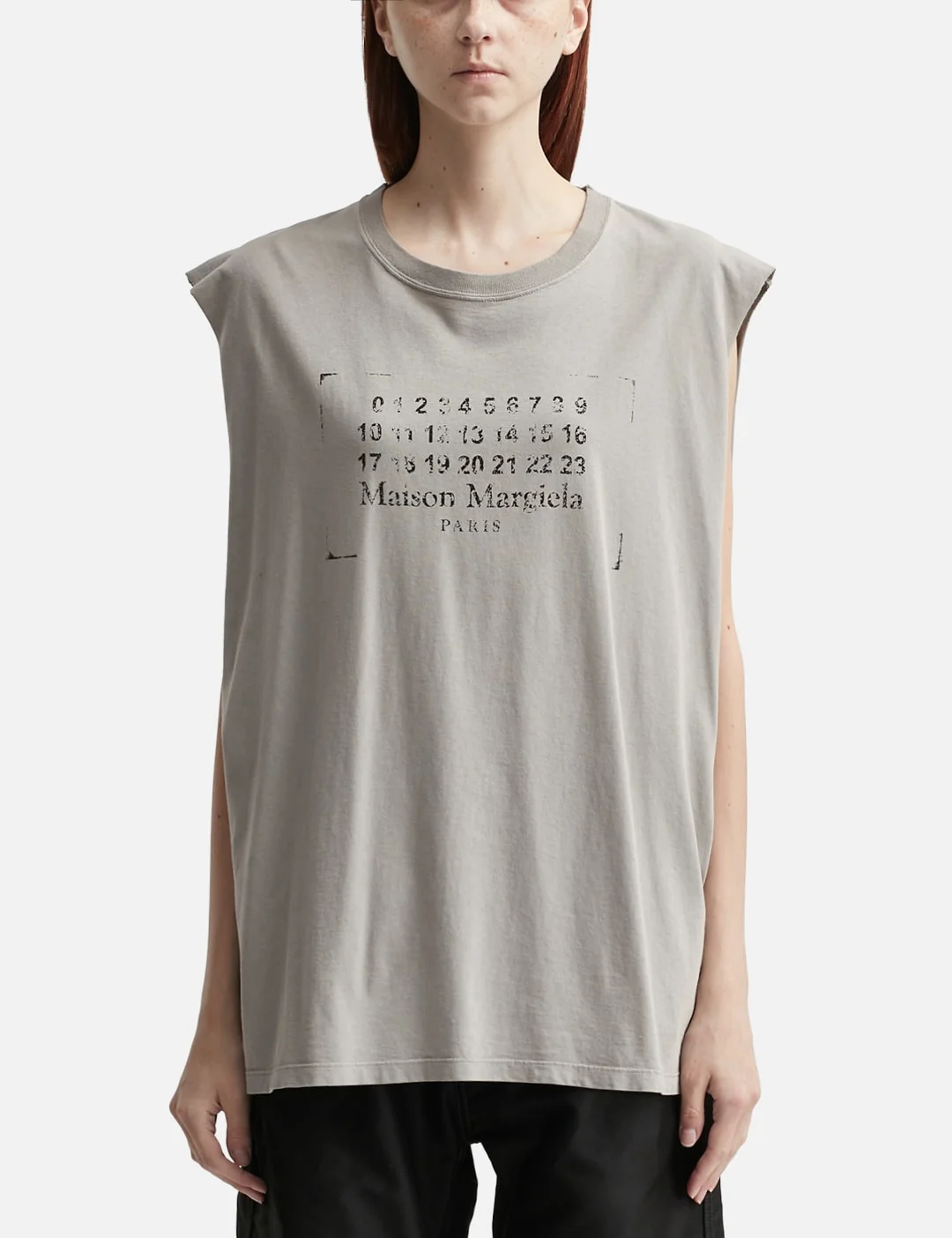 - Maison Margiela - Sleeveless Top - Made of cotton - Ribbed crewneck - Deep-cut armhole with raw edges - Numeric signature across the chest - Signature four-stitch on the rear neckline - Straight hem - Made in Italy - Color: White - Material: 100% Cotton - See more Tanks and Clothing - Model wears size M - Model measures: Height 186cm, Chest 34”/86cm, Waist 28”/71cm, Hip 36”/91cm - Model wears size S - Model measures: Height 177cm, Chest 32”/81cm, Waist 23.5”/59.7cm, Hip 33’’/83.8cm - Vendor Code: S51NL0053S24575803