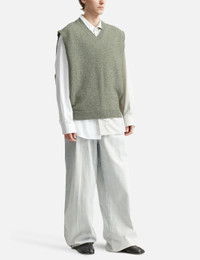 - Maison Margiela - Stole - Wool blend - Oversized fit - V-neck - Side openings and single-button fastening - Ribbed trims - Rear signature stitch accent - Color: Sage Green - Material: 68% Wool, 29% Cashmere, 3% Nylon - See more Vests and Clothing SIZING Male - Model wears size M - Model measures: Height 189cm, Chest 31.5"/80cm, Waist 27”/69cm, Hip 34.3’’/87cm - Model wears size S - Model measures: Height 175cm, Chest 32’/81cm, Waist 24.5’’/61.2cm, Hip 35’’/88.9cm