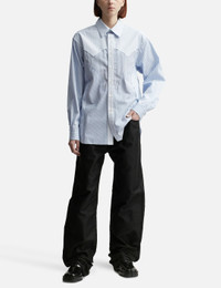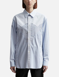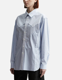 - Maison Margiela - Stripe Yoke Shirt - Four patchwork stripe patterns and yoke details - Button closure - Raw-edge curved hem - Color: Blue - Material: 100% Cotton - See more Shirts and Clothing SIZING Male - Model wears size 40 - Model measures: Height 186cm, Chest 34”/86cm, Waist 28”/71cm, Hip 36”/91cm - Model wears size 39 - Model measures: Height 177cm, Chest 32"/81cm, Waist 23.5"/59.7cm, Hip 33’’/83.8cm