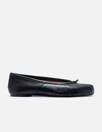 - Maison Margiela - Tabi new ballerina - Nappa leather upper - Tabi split toe - Handmade leather folds - Worn treatment - Cotton knot at the front - White stitching at the back - Calf leather lining and sole - Made in Italy - Color: Black - Material: Lamb Leather, Calf Leather - See more Casual Shoes and Shoes