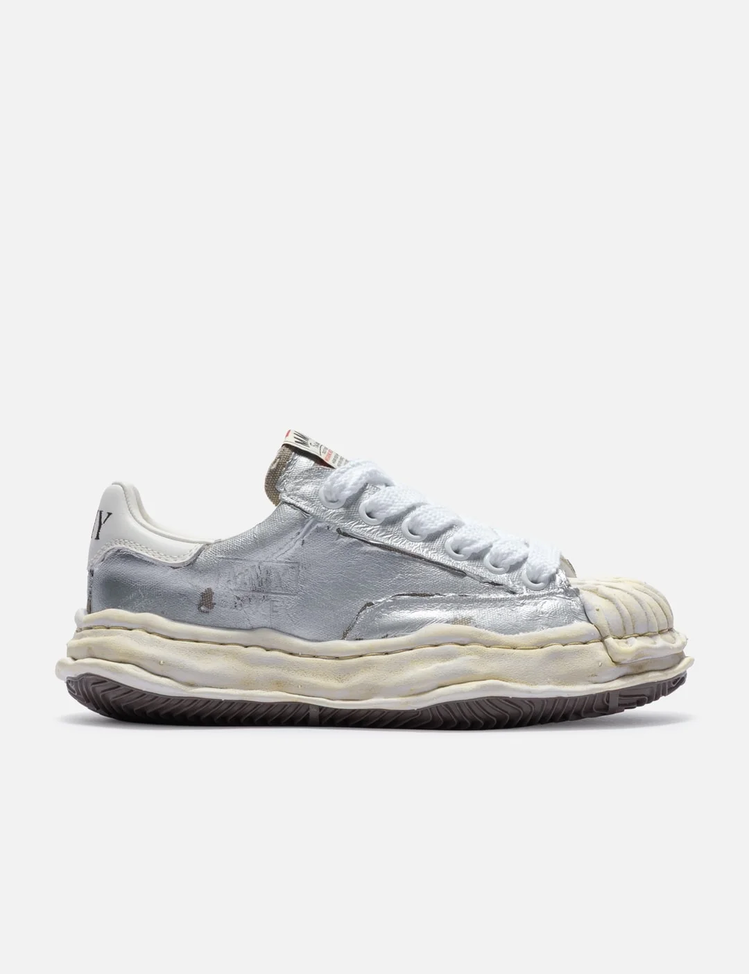 - Maison Mihara Yasuhiro - "Blakey" OG Sole Film Attached Canvas Low-top Sneaker - Film finish for lustrous texture - Canvas upper - Lace-up closure - Woven logo patch on the tongue - Logo embroidered on the side - Branded leather heel tab - Chunky rubber outsole - Color: Silver - Material: Cotton, Rubber - See more Sneakers and Shoes - Vendor Code: A15FW727