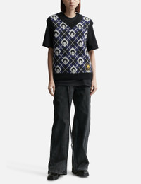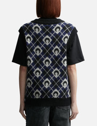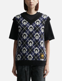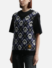 - Marine Serre - Moon Argyle Knit Vest - Mohair-polyamide knit vest - Double layer ribbed knit neckline, armhole, and hem - Color: Black - Material: 50% Mohair, 32% Polyamide, 18% Merino Wool; Second Fabric: 100% Merino Wool - See more Vests and Clothing SIZING - Model wears size S - Model measures: Height 177cm, Chest 32”/81cm, Waist 23.5”/59.7cm, Hip 33’’/83.8cm