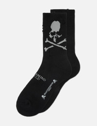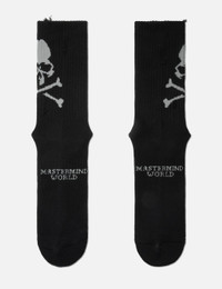 - Mastermind World - Distressed Crew Socks 2 - Distressed details throughout - Cotton-nylon blend fabric - Woven logo at side cuffs, forefoot, and sole - Crew length - Color: Black - Material: 88% Cotton, 12% Nylon - See more Socks and Accessories SIZING Approximate measurement: - Size S - Max. Length: 35cm - Heel to Toe: 21cm - Size M - Max. Length: 38cm - Heel to Toe: 24cm - Size L - Max. Length: 41cm - Heel to Toe: 26cm
