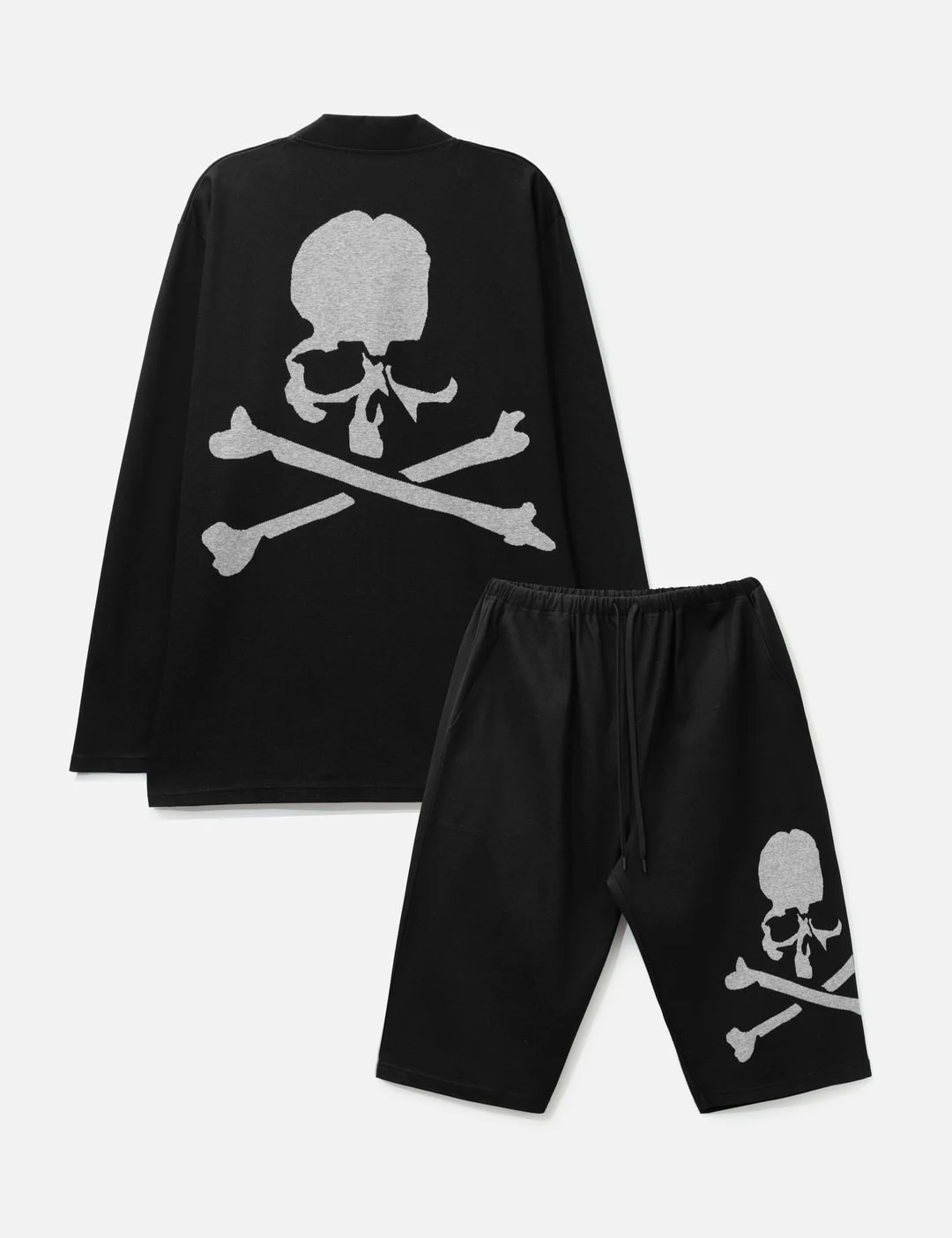 - Mastermind World - Long Sleeve Lounge Set - Set of 2 - V neck - Long sleeves - Button closure - Skull logo prints - Elastic waistband with drawstring - Two side pockets - Single back pocket - Comes with a branded laundry bag - Color: Black - Material: 100% Cotton - See more Outfits & Sets and Clothing - Model wears size M - Model measures: Height 189cm, Chest 35.5”/90cm, Waist 28.5”/72.5cm, Hip 37.5”/95cm - Vendor Code: MW26SE1-PJ002