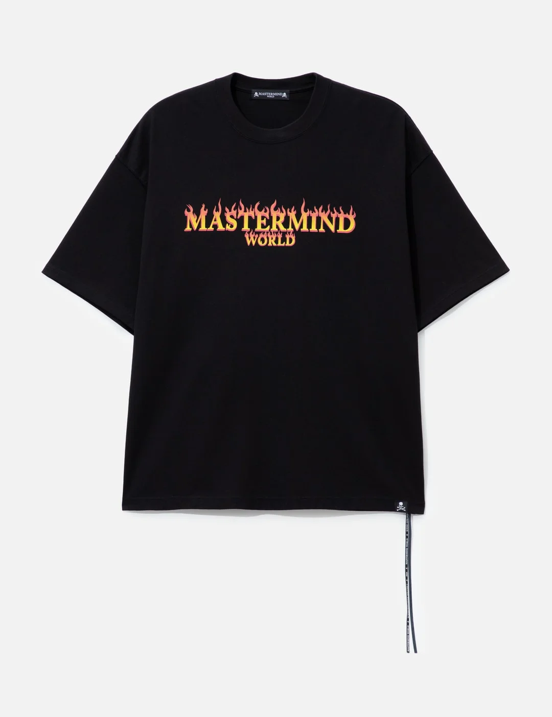 - Mastermind World - Skull On Fire Boxy SS Tee Ver.1 - Made of original jersey knit fabric, blends Suvin Gold and Giza cotton - Advanced odor-neutralizing fibers - Boxy fit - Ribbed crewneck - Short sleeve - Original graphic inkjet printed on both front and back - Made in Japan - Color: Black - Material: 100% Cotton - See more SS T-Shirts, T-Shirts and Clothing - Model wears size M - Model measures: Height 189cm, Chest 35.5”/90cm, Waist 28.5”/72.5cm, Hip 37.5”/95cm - Vendor Code: MW26SE1-TS059-020