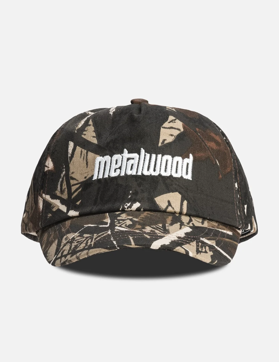 - Metalwood Studio - Metal Logo 5-Panel Hat - 5-Panel cotton cap - Brand embroidery on the front - Embroidery eyelets - Velcro adjuster on the back - Unique camouflage pattern for each cap - Color: Real Leaf Camo - Material: 100% Cotton - See more Caps, Hats and Accessories - Brim Width: 7cm - Crown Height: 12cm - Circumference: 60cm - Vendor Code: MWS25-01-10-RLC